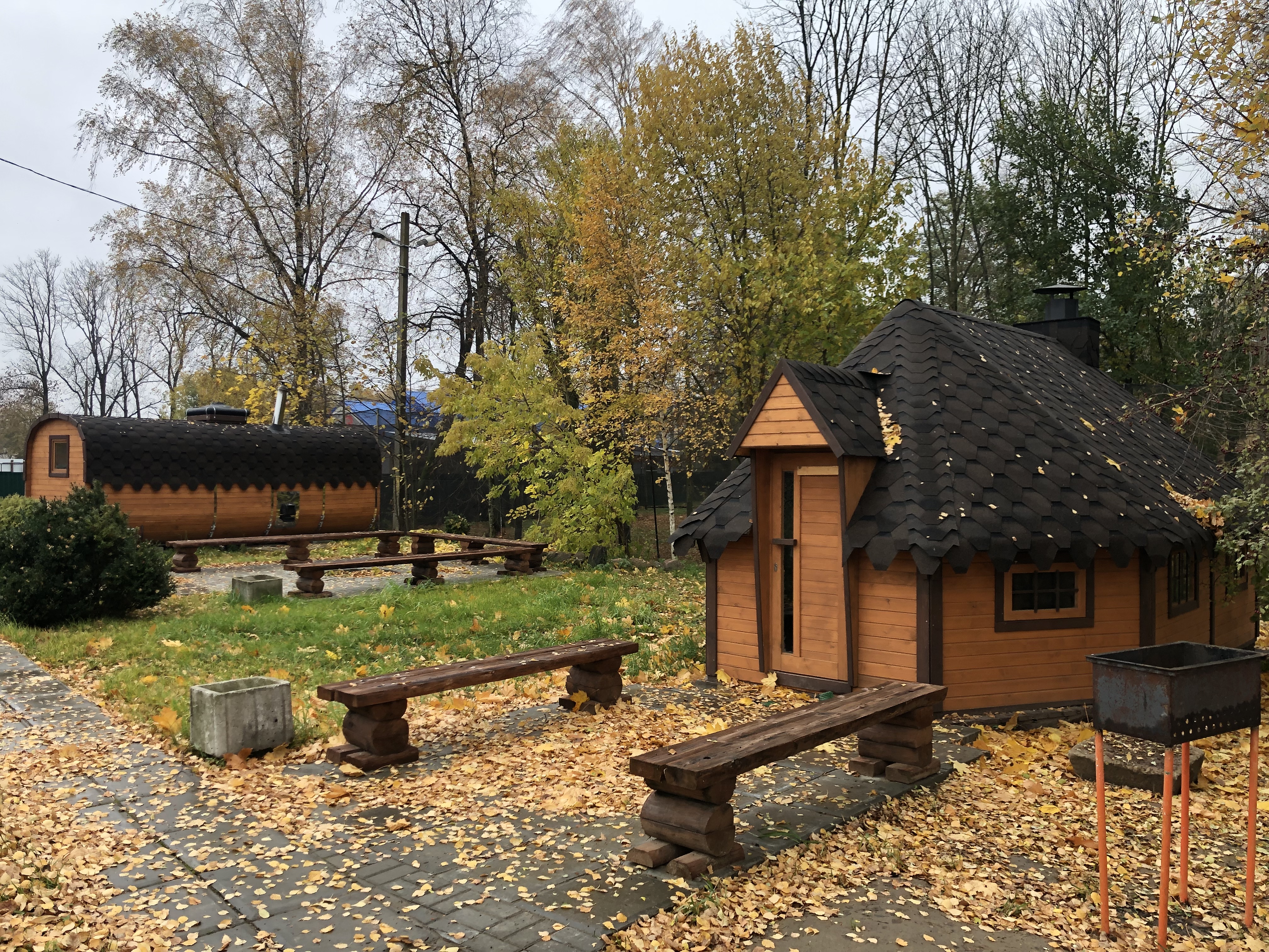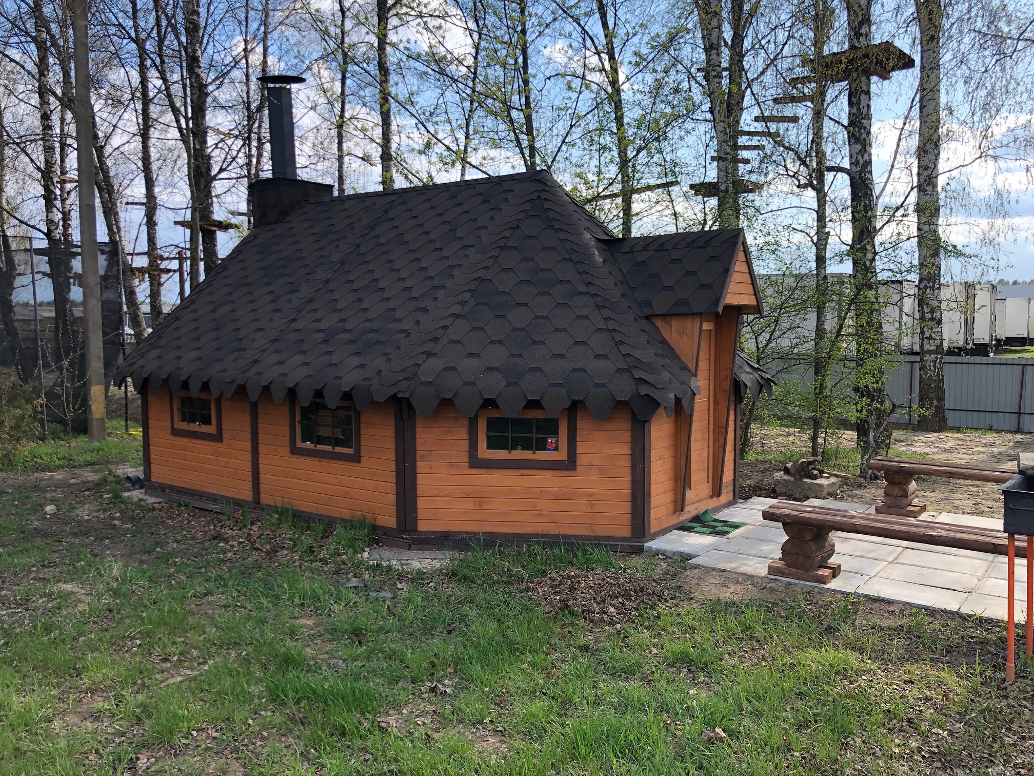 Предоставляем мангал рядом с домиком.